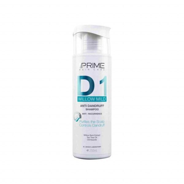 شامپو ضد شوره ملایم مو پرایم از دسته محصولات مراقبت از مو ، حاوی عصاره پوست درخت بید، کلیبمبازول و روغن درخت چای است. این شامپو برای انواع مو دارای شوره فرموله شده و به عنوان شامپو مکمل در طول دوره درمان و پس از آن برای از بین بردن انواع شوره خشک و چرب موثر است. شامپو D1 پرایم ضمن پاکسازی پوست سر، از پوست سر محافظت کرده و خطر بازگشت شوره را کاهش می دهد. کلیمبازول به کار رفته در این شامپو با اثر ضد قارچ قوی به طور مستقیم با میکروارگانیسم های مولد شوره حمله کرده و آن ها را مهار می کند.