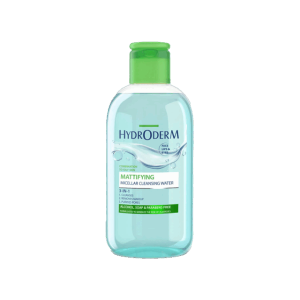میسلار واتر هیدرودرم مدل Mattifying محصولی سه کاره است که ضمن پاک کردن آلودگی ها و لوازم آرایشی، پوست را مات کرده، سایز منافذ را کاهش داده و چربی اضافه آن را کنترل می کند. این محصول برای پوست های چرب، مختلط و جوش دار فرموله شده و در یک مرحله، مواد آرایشی، گرد و غبار و آلودگی ها را از روی پوست پاک خواهد کرد. میسلار واتر هیدرودرم فاقد الکل، پارابن و مواد صابونی بوده، برای صورت، چشم و لب قابل استفاده است و ضمن تقویت پوست، آن را با طراوت خواهد کرد.