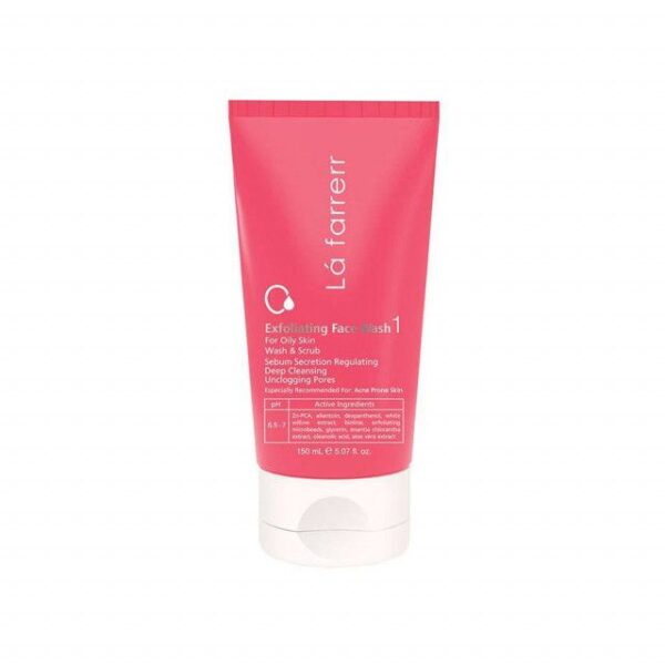 ژل شستشوی صورت لافارر پوست چرب و مستعد آکنه حاوی اسکراب بوده که با داشتن PH طبیعی و سازگار با پوست، ضمن پاک کردن مواد آرایشی، آلودگی ها، گرد و غبار و سایر نا خالصی ها از روی پوست، آن را لایه برداری می کند. ژل شستشوی صورت لافارر منافذ پوست را به صورت عمقی پاکسازی کرده و ترشح چربی آن را کنترل می کند و ظاهر پوست را مات کرده و براقیت آن را کاهش می دهد. همچنین، نقش موثری در بر طرف کردن جوش های سر سیاه پوست دارد. حذف سلول های مرده سطح پوست و کاهش التهابات و حساسیت های پوستی از دیگر ویژگی های این ژل شستشوی صورت است.